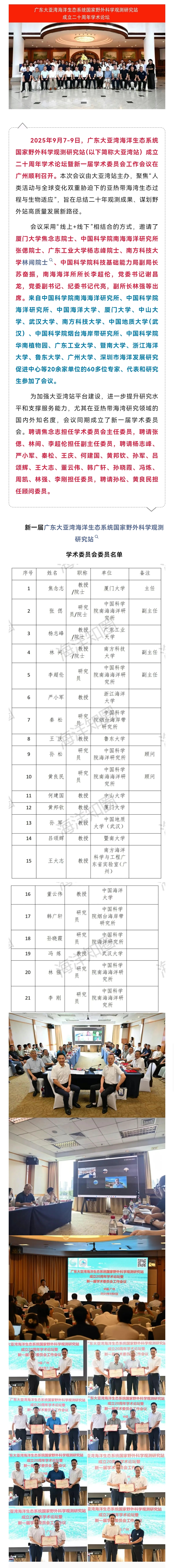 新一届广东大亚湾海洋生态系统国度野外科学不雅测研究坐学术委员会委员海洋财富网名单发布!焦念志院士、张偲院士、林间传授、李超伦研究员等领衔!焦念志院士、林间传授、李超伦研究员等领衔!